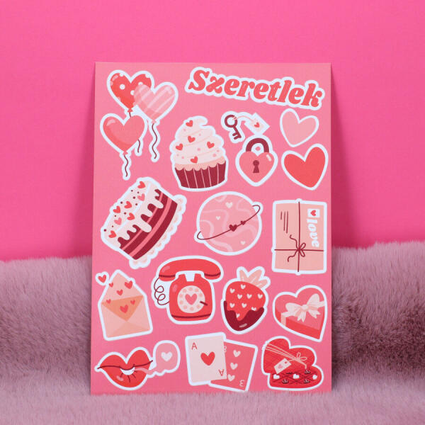 Szeretlek matrica ív A csomagban 1 db matrica ív található 16 db matrica / ív